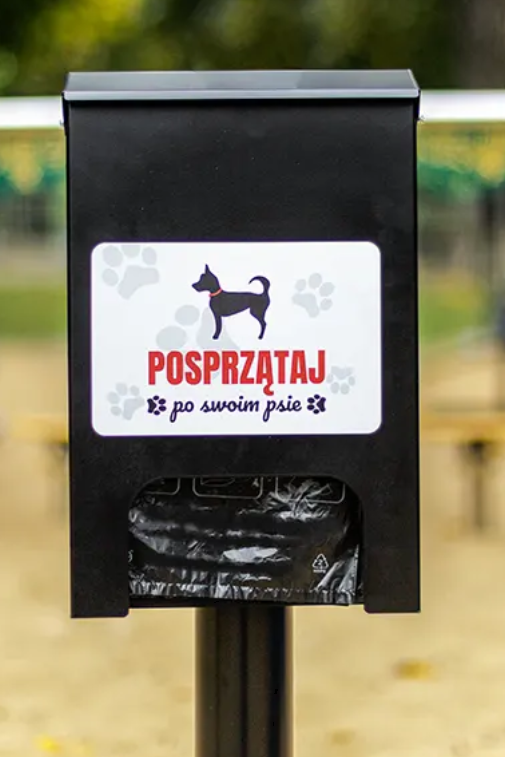 Przy wejściach do parków i na wybiegi dla psów: Jako przypomnienie o obowiązku sprzątania przed wejściem na teren zielony.