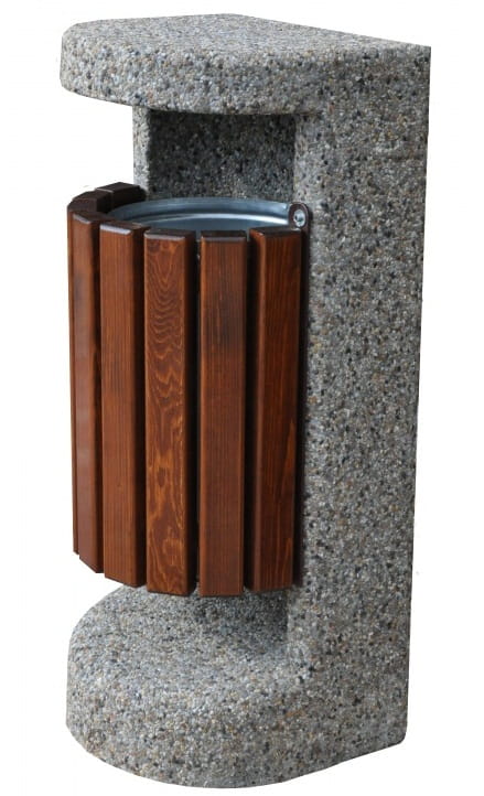 Kosz betonowy wykonany jest z betonu wysokiej klasy C30/37 w technologii „beton płukany” pokryty kamieniem płukanym lub mieszanką grysów. Listwy wykonane są z drewna świerkowego, które jest zaimpregnowane specjalnym przeciwgrzybicznym preparatem, chroniącym je także przed negatywnym wpływem czynników atmosferycznych. Warstwa wierzchnia pokryta jest dodatkowo lakierem ochronnym. Kosz posiada wkład ocynkowany.